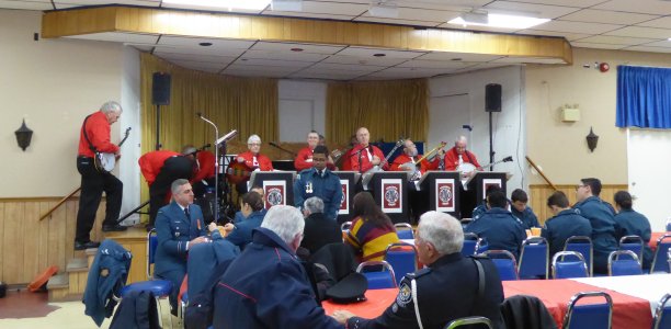 Remembrance Day at the Royal Canadian Legion Royal Canadian Legion Branch 414, Woodbridge, Ontario November 11, 2019 The Toronto Banjo Band has changed its practice site to the Royal Canadian Legion branch in Woodbridge this fall. We asked the Legion if they would like us to play at their Remembrance Day gathering. They thought it was a fine idea. We played some of the old wartime tunes along with our regular fare. Below are some photos provided by Jack Currie. Thanks for sending these along Jack.