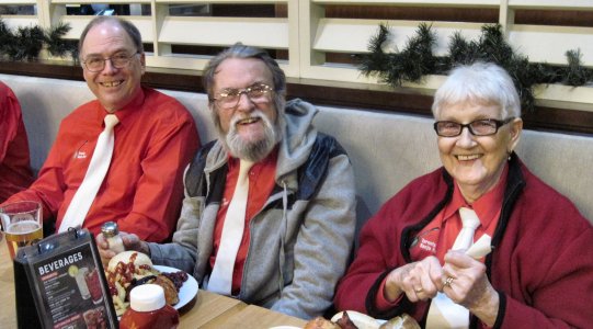 After the show the band retired to the Swiss Chalet down the road for Christmas dinner. Carl, Glen, Jeff, Earl and Sheila.