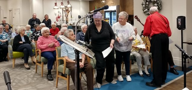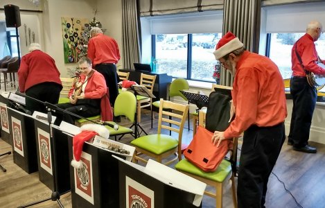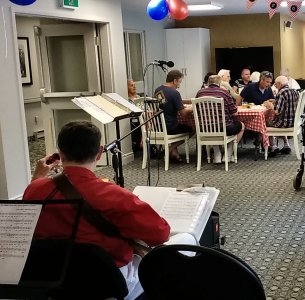 Amica Newmarket Retirement Community Newmarket, Ontario January 7, 2020 We had played at this Amica back in January of 2019 and also in July 2019, and were back again for a return engagement. Thanks to Jim Hindorff for making the arrangements for us. Pictures by Jack Currie and Bev Cattle. Thanks Jack and Bev.