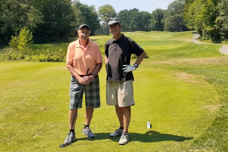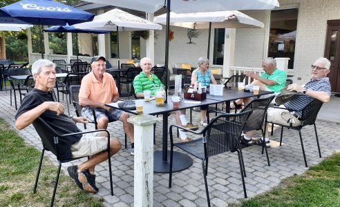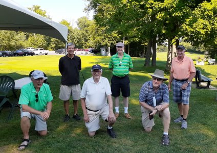 TBB Golf Day Timber Ridge Golf Course, Brighton, Ontario August 12, 2019 This was the 7th time the TBB Golf Day has been held. Every year we have played at the same course, Timber Ridge, just north of Brighton, Ontario. Those that took part this year were Jim Hindorff with his friend Bob Musson, Glen Midgley, Bob Walton, Jack Currie, and Al Pounsett with his long time friend and neighbour Alan Brewster. The weather cooperated with variable cloudiness and a nice breeze to lessen the heat of the day. No holes in one, in fact, there has never been a hole in one on this event. Glen Midgley and Bob Walton tied for lowest gross score. Congratulations to Glen and Bob. After golf, the group travelled a few kilometres to Al and Betty Pounsett's home for beer, burgers and berries. Hopefully we can all make it back in 2020. A few snapshots below by Jack Currie and Al Pounsett.
