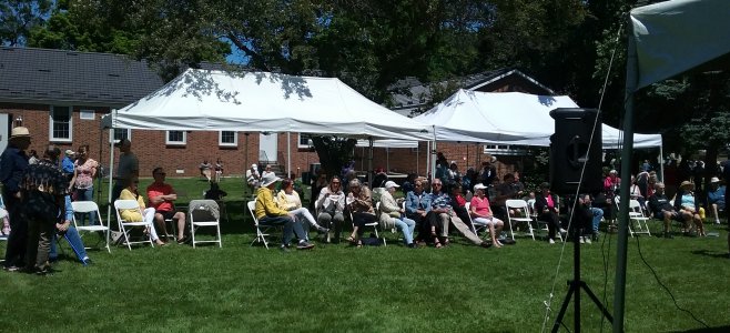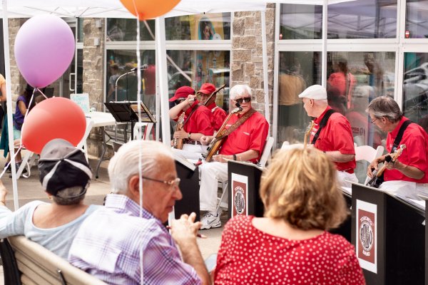 Folks taking in the Toronto Banjo Band show in the Entertainment Tent.