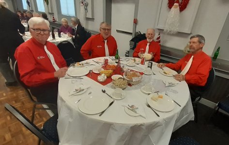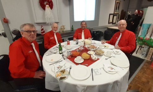 Royal Canadian Legion Branch 266/046 Toronto, Ontario Easter Roast Beef Dinner for the Sunnybrook Hospital Veterans April 6, 2025 The Toronto Banjo Band was treated to a fine roast beef dinner at the Legion we practise at. The occasion was the annual Easter Veterans Luncheon they put on for veterans staying at their K Wing of Sunnybrook Hospital in Toronto. The apple pie and ice cream was rated excellent. A pleasure to play for these folks.