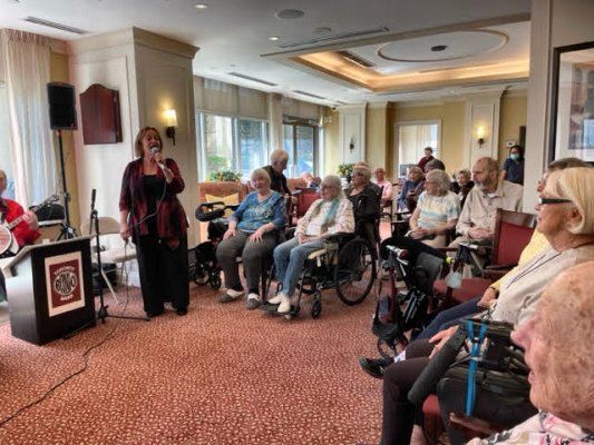 Christie Gardens Apartments and Care, Toronto, Ontario. September 27, 2023 The band returned to Christie Gardens in Toronto. Bev, our onsite reporter, said that "The gig went well and the audience sang along and many people came up to us afterwards and said that they hope we will come back" Good to hear. Friend of the band, Linda, took the photos below. Thanks for that.