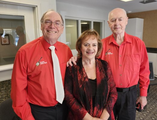 Our singer Barb, banjo-mandolin player Bev and band president Glen.