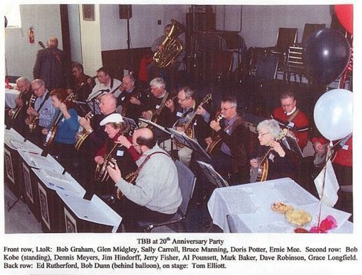 The TBB Has Lost Two Long Time Banjo Players Doris Potter and Borgy Borgerson November, 2019 This past week saw the passing of both Doris Potter and of Borgy Borgerson. Doris Potter Doris was a long time tenor banjo soloist with the Toronto Banjo Band. Sadly, Doris passed away a short time ago. She was an excellent player and an inspiring addition to our band. We had played at Doris's residence a year or two after she had retired from the TBB. It didn't take much to get Doris temporarily back out of retirement and up on the stage to play a number or two. It's sad to know that our banjo playing friend has gone. This article on Doris was published by the Don Mills residence where Doris Potter lived. Borgy Borgerson Borgy passed away on November 4, 2019. He was a founding member of the Toronto Banjo Band and inducted into the Banjo Hall of Fame last year. The American Banjo Museum produced a YOUTUBE tribute to Borgy at his induction into the Hall of Fame. Borgy had a number of banjo playing friends across Canada as he had performed from Quebec to British Columbia and points in between. In addition to the video tribute, the American Banjo Museum wrote the following: "It is with sadness that we report the passing of Alfred Borgy Borgerson on November 4, 2019 in his 94th year. He was a recent inductee into the American Banjo Museum Hall of Fame in 2018. Borgy was a true gentleman and did much to promote the banjo throughout North America. His career as an entertainer and banjoist extraordinaire spanned more than half a century. He will be sadly missed by his many friends and family across Canada and beyond. He was a founding member of the Toronto Banjo Band, a band that is still going strong since 1986. Borgy is survived by Eunice his bride of 70 years, an occasion that they celebrated in August, 2019."