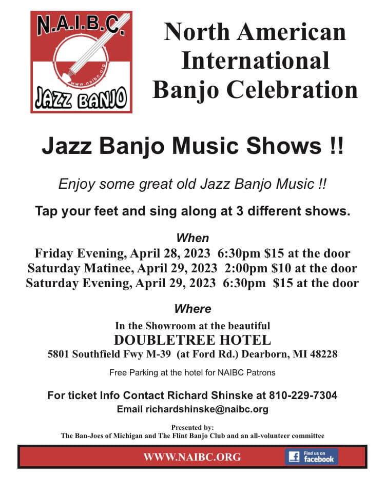 American Banjo Museum - Facebook Banjo Shows March 27, 2020 As a diversion from the pandemic, the American Banjo Museum is putting on a series of shows accessible over the Internet. Their schedule for upcoming shows is below. They are accessible via the ABM Facebook page referenced at the bottom of the schedule.